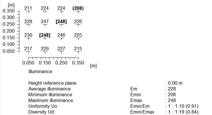 In einer Entfernung von 40cm und einer Beleuchtungsdauer von 12 Stunden erhalten die Sämlinge mit der Q1W Pflanzleuchte 250 µmol/m²/s PPFD, das entspricht hochgerechnet ca. 10 DLI.